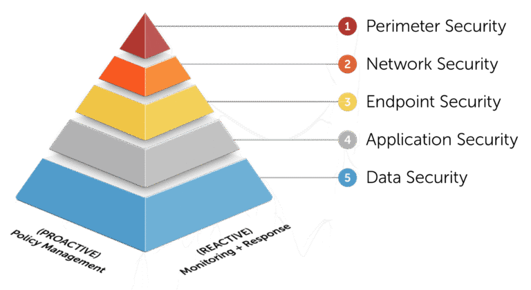The term “defence-in-depth” is used to describe a multi-layered security architecture. The idea is to combine technology components with good security management practices to create protective layers that reduce the risk of attack and intrusion.